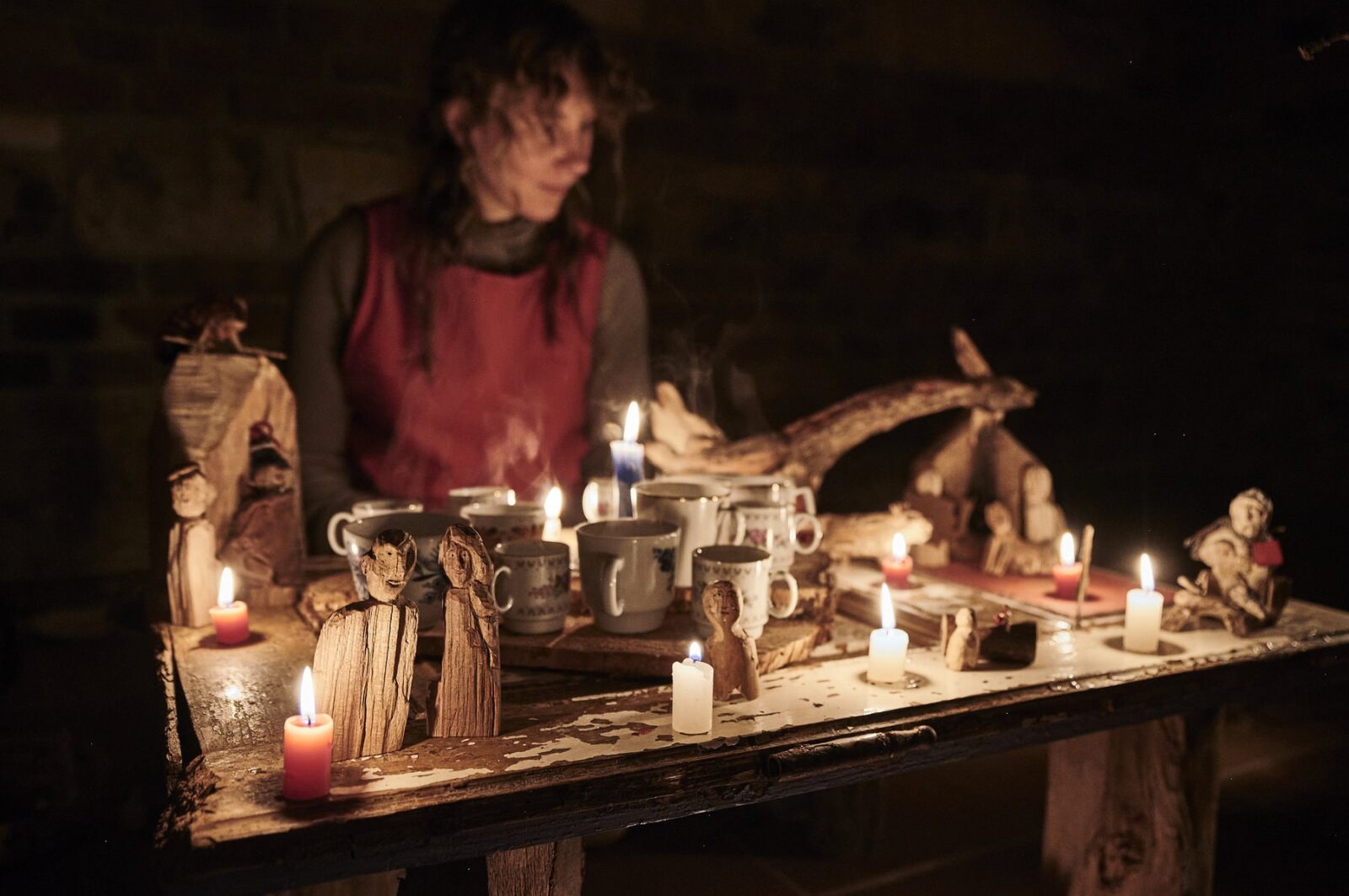 Daria Gosteva tells the story of a strange house under the fir trees just outside Moscow. Memories immerse us in a mysterious house with a cold kitchen built from window frames and steep red stairs, and its bizarre inhabitants and neighbors: a singing bourgeoisie, an Afghan war veteran, siblings Dong and Jumbli, and other peculiar residents of this close yet distant world. The performance was originally created as a home theater project, and we also present it at Alfred ve dvoře for a limited number of spectators.