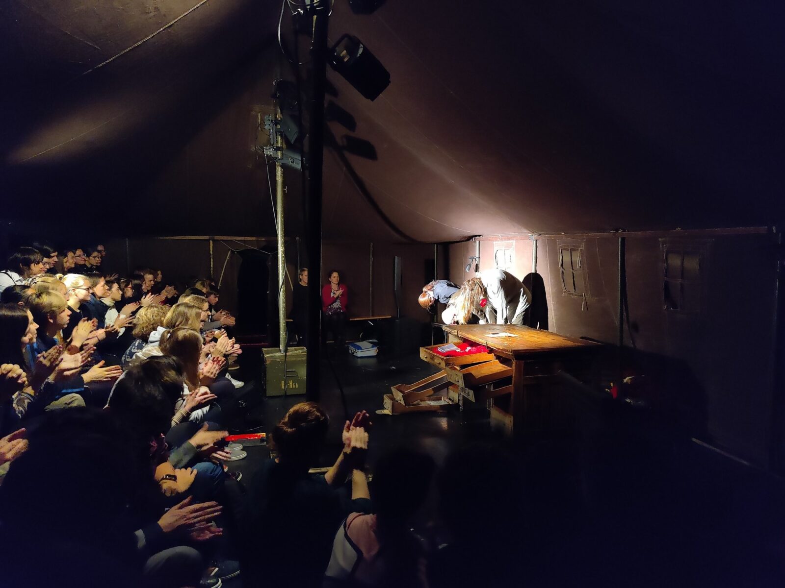 wednesday 23th November after the performance of Putin is Skiing /a play about the birth of a killer/ in the Plum Yard in the village of Malovice