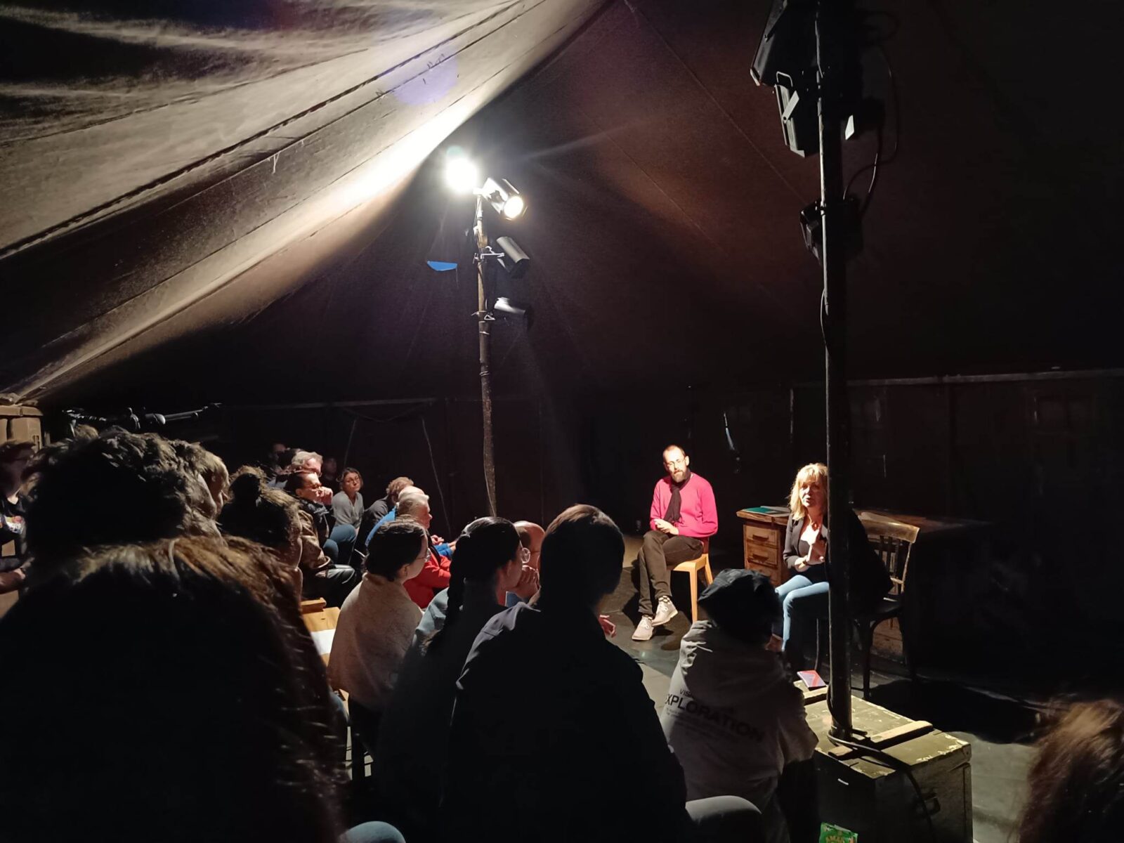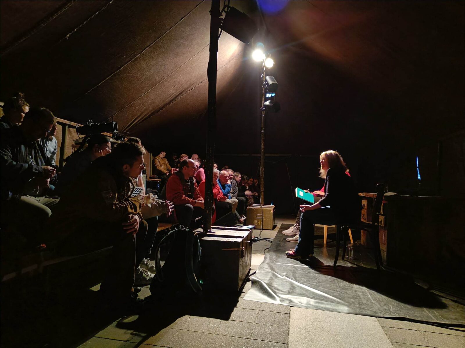 …physical proximity (of the play) is a powerful medium, the smell of the tent, the physicality of the space, slightly uncomfortable; you have these wonderful random sounds that happen outside, which somehow become the soundtrack to the play.
