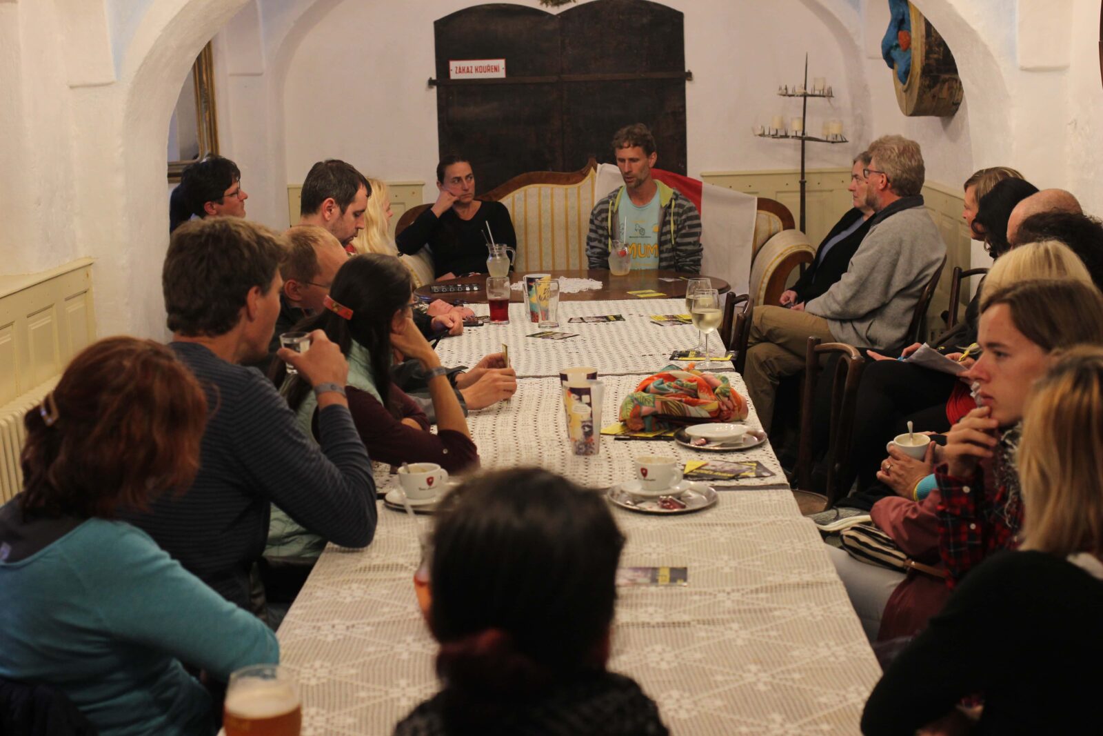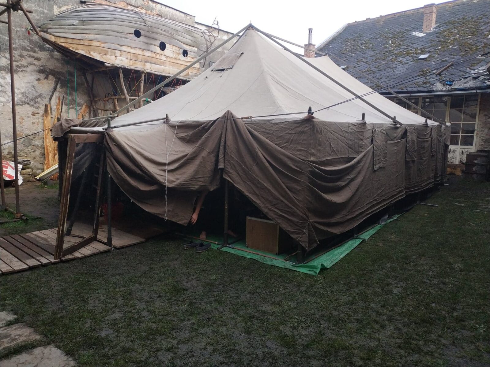 At the end of August, we played a performance of Putin Skis at the Open Jimramov festival, where our theater tent grew up in heavy rain from the mud of the backyard of the Kovářova kobyla café. A discussion about the current situation of artists and active citizens in Belarus with the translator and ambassador of the Embassy of Independent Belarusian Culture in the Czech Republic, Sjarhej Smatryčenka, took place in the cozy lounge of the café.